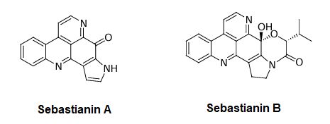 Patočka, Martin Doucha Sebastianiny A a B, dva pyridoakridinové alkaloidy s novými aromatickými kruhovými systémy, byly izolovány z pláštěnců Cystodytes dellechiajai (Baker & Alvi, 2004). Obě sloučeniny vykazovaly cytotoxicitu proti panelu geneticky modifikovaných buněčných linií karcinomu tlustého střeva HCT116 a demonstrovaly vzorce aktivity svědčící o mechanismu závislém na p53 (Pandey, 2012). Jak dokazuje každá z výše uvedených studií, charakterizace mechanismu účinku antiproliferativních sloučenin se v této oblasti stává stále důležitější než pouhý popis cytotoxicity (Pandey & Chalamala, 2013).