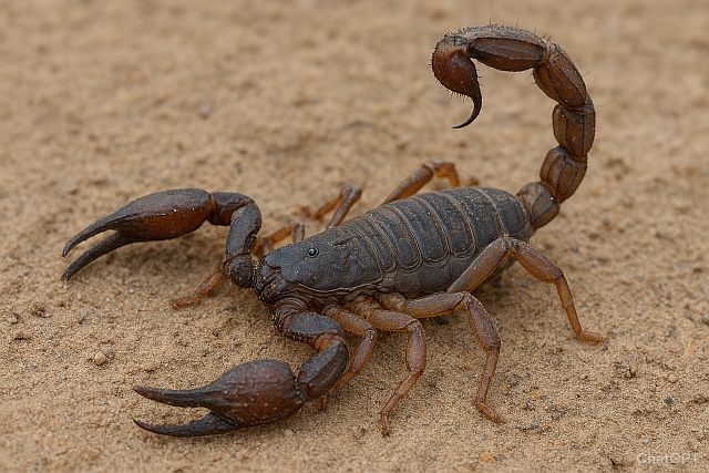 bodnutí včely, ale není jedovatý jako jiné druhy štírů. Typickým znakem je