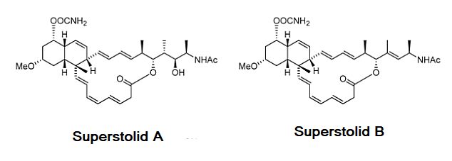 Jiří Patočka Neosiphonia superstes je druh mořské houby lokalizovaný v oblasti Nové Kaledonie v jižním Pacifiku (Fuwa, 2021). Houba byla původně identifikována během plavby expedice HMS Challenger v roce 1874 a byla znovu vzkříšena na počátku 90. let, kdy D'auria a spol. z ní izolovali nové makrolidy, které nazvali superstolidy A a B, u kterých se následně ukázalo, že vykazují protirakovinnou aktivitu (D'Auria et al., 1993, 1994a,b, 1995).